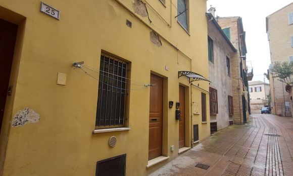 L'immobile residenziale fa parte di un fabbricato di civile abitazione posto nel centro storico di Macerata, composto da 6 unita' abitative e 4 box garage. L'ingresso dell'immobile e' ubicato in vicolo Accorretti 23/c (corrispondente al piano terra). L'altro lato esterno dell'immobile ha affaccio con due finestre su via Mozzi, mentre altri due lati confinanti della proprieta' sono interni e contigui ad altri immobili del fabbricato. L'impresa Immobilmarche srl di Macerata ha finito di ristrutturare il fabbricato nel 1999 (progettista architettonico: studio tecnico geom. Luciano Rossetti di Macerata). L'impresa ha demolito, ricostruito e riorganizzato i vani interni dell'edificio preesistente: insieme sono stati modificati e coibentati (migliorandone le relative proprieta') anche i muri perimitrali del nuovo edificio. La ristrutturazione ha comportato il rifacimento degli impianti idrici, gas ed elettrici, nonche la sostituzione dei relativi infissi e serramenti. In generale per l'edificio e l'appartamento sono state utilizzate soluzioni tecnico-costruttive di alta qualita' in grado di assicurare adeguato isolamento termico ed acustico, sicurezza sismica, oltreche comfort e finiture estetiche di valore. L'immobile e' indipendente dal fabbricato in quanto a ingressi ed impianti, ed e' composto da una cucina abitabile, corridoio, due stanze attualmente adibite a camere da letto e ripostilglio (ospitante la caldaia individuale). L'unita' immobiliare e' attualmente dotata di mobilio completo, in buone condizioni. L'appartamento ha accesso diretto dal vicolo Accorretti tramite portone blindato individuale. Nello stesso lato vi e' un infisso protetto da inferriate esterne antiintrusione. Dopo tre scalini interni , si sviluppa su un unico piano, corrispondente al piano terra. Dopo la cucina abitabile con angolo sofa', tramite una porta si accede agli altri vani, e dall'altro lato si ha affaccio diretto delle due camere da letto su via Mozzi, strada a traffico limitato. Tutto il capitolato inerente le finiture dell'appartamento e' di qualita' molto buona, come pure l'attuale stato di conservazione. In particolare gli infissi di legno massiccio sono in ottimo stato di conservazione, sono protetti da persiane e sono tutti dotati di vetro camera. Inoltre l'appartamento e' servito da antenna Tv digitale terrestre e raggiunto da linea di connessione digitale in fibra.
